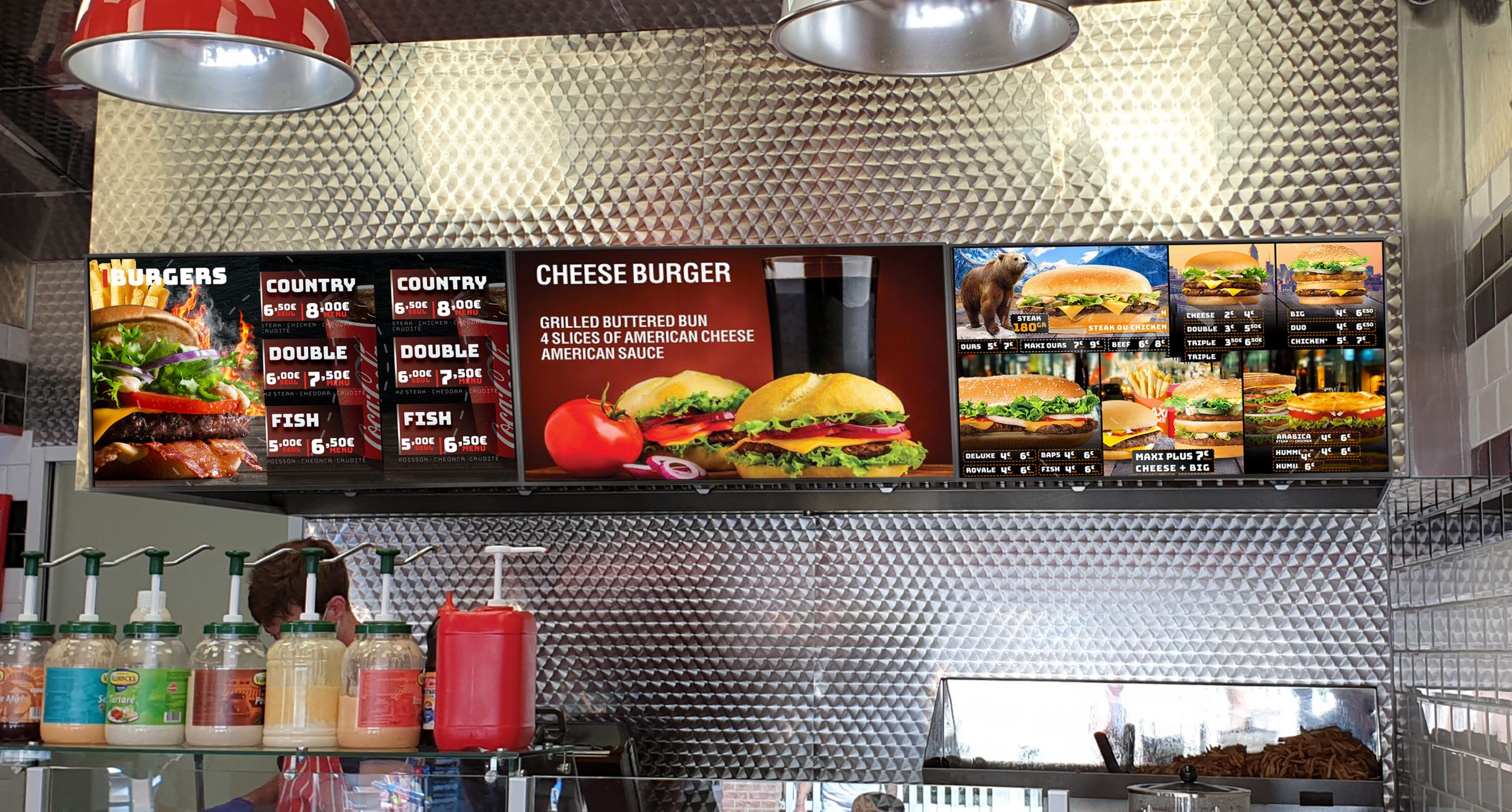 • Restaurants et cafés : menus numériques et contenus dynamiques