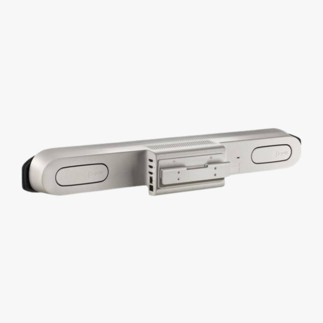 Côté audio, elle dispose de 5 microphones MEMS extrêmement performants et d’un haut-parleur HD Full-Duplex pour que les paroles soient toujours transmises clairement entre les différents interlocuteurs. Elle englobe les technologies Poly NoiseBlock AI et Acoustic Fence, deux paramètres intelligents qui élimineront efficacement les échos, les nuisances sonores et qui couperont automatiquement le microphone dès lors qu’aucune voix n’est détectée, ceci afin que vous profitiez d’échanges cristallins en toutes circonstances. La poly studio X50 utilise les hauts-parleurs et enceintes de l’écran ou de la salle, selon vos préférences, pour un rendu naturel.
