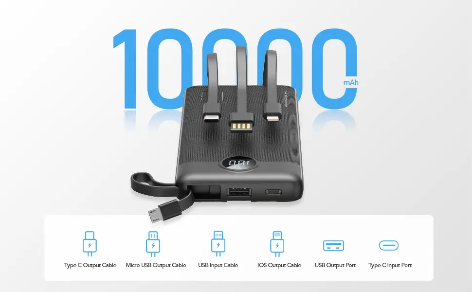 Capacité : 10000mAh (37Wh), idéale pour plusieurs charges complètes.